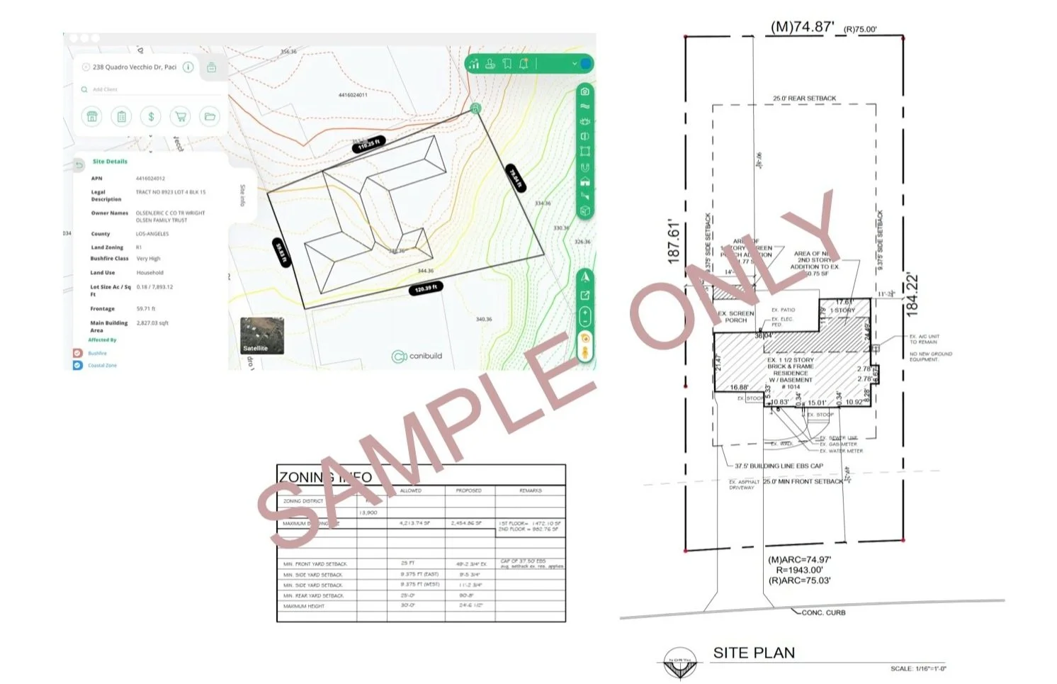 A Plat of Survey (aerial view) of your lot which shows your lot lines and home footprint. Often provided with your closing documents. Used to determine zoning requirements.